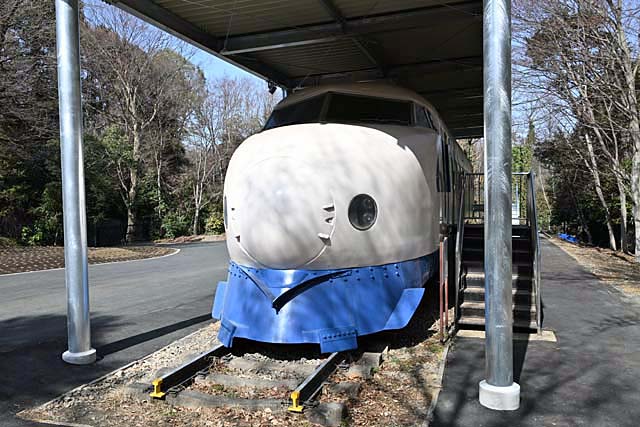 敷地の一番奥,階段を下りたところには新幹線0系電車が据えられている.