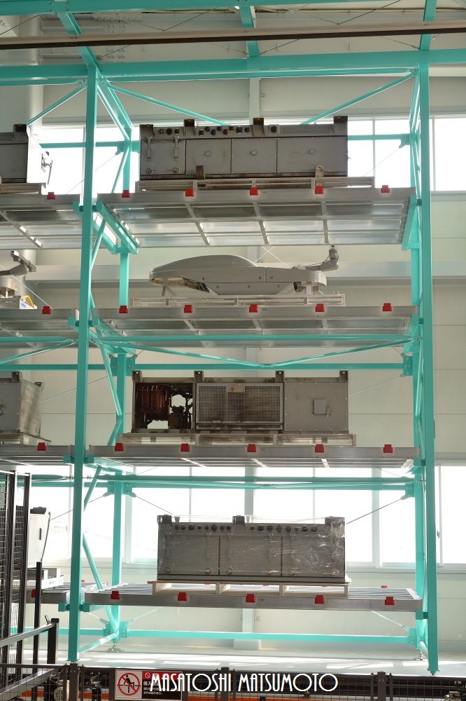 部品も部品検修ラインにて解体、清掃し、空制&電気関係の各検修を済ませ落成した機器は立体格納庫へ無人搬送機(AGV)にて収納されます。