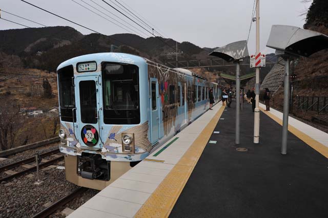 所沢と飯能でそれぞれ進行方向を変え,普通電車を追い抜いたり,特急や40000系の試運転(!)を対比したりしているうちに,列車はあっという間に芦ヶ久保へ到着.終着を目前に控えたここで約30分間の大休止.たっぷりとした食事のあとの腹ごなしとばかりに,駅前に設けられた道の駅などを冷やかしに出かけてみたり…….