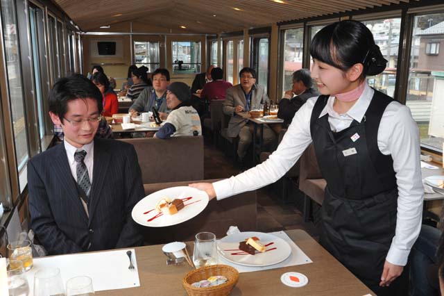 でも,“取材”なのだから,調理の様子を撮影するためにキッチンと客席を往復し,さらにアテンダントさんの様子もスナップし…と,実際には,大忙し.