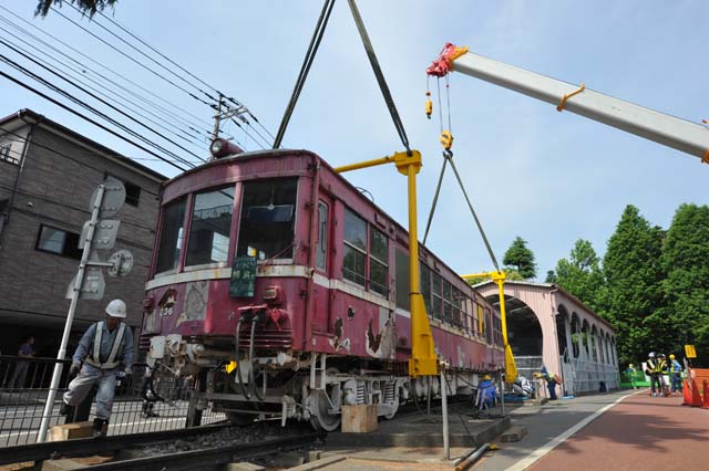 昭和53/1978年の現役引退後は,関水金属本社社屋前のデハ268のほか,数ヵ所で保存された.それらのうちの1輛が,埼玉県川口市の児童文化センターに引き取られたデハ236.大切にされていたものの,同センターの移転に伴って管理者不在状態となり,一時は解体撤去のための予算が計上されるなど,行く末が案じられていたものである.