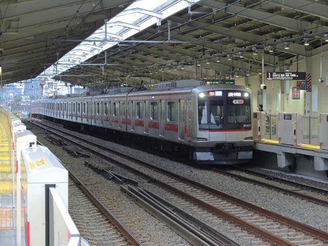 5050系の最新編成.この写真では解りづらいが,発車していく時に見送っていたら,前から5輛目のサハ5577の床下機器に見慣れない形の部品を発見したのだった.