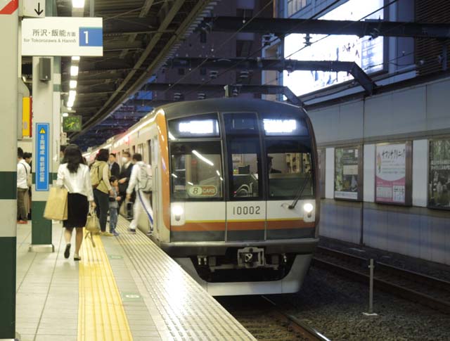 東京地下鉄10000系の8連が5月上旬に姿を見せた.写真は5月3日の練馬駅.ほんのちょっとで10連に復帰してしまったようだ.