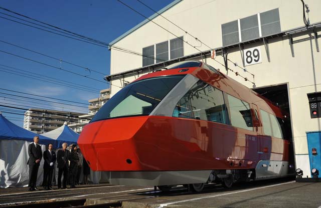 “箱根につづく時間(とき)を優雅に走るロマンスカー”をキーコンセプトとして開発,製造された小田急電鉄の新ロマンスカーが披露された.