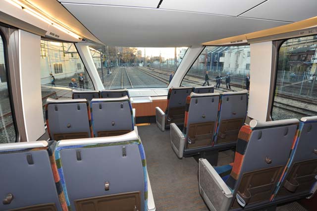 展望客席はVSEこと50000形よりも約35cm前方に配置し,展望窓の天地寸法を約30cm拡大してより広い前面眺望を確保している.