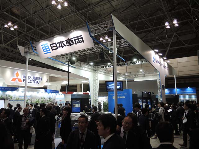 人の波に呑み込まれてしまいそうな,日本車両のブース.なにしろエントランスの真ん前にあるのだから,それも無理からぬところだけれど,理由はそれだけではなかった.