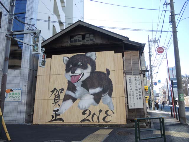 そしてことし最初のブログのシメ.それは,今日の待ち合わせの前に会社へ立ち寄った際にスナップした,江古田名物(?)加藤材木店の干支の絵である.