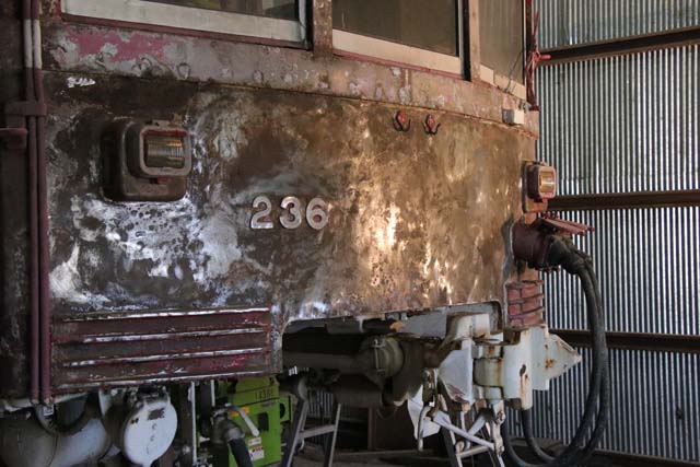 昨年5月26日付けのここで,総合車両製作所への移送を速報し,とれいんの2018年新年号の中で“保存車輛めぐり”として下から見上げた台枠や,床下機器の裏側までお目にかけた,京浜急行電鉄デハ230形236号のこと.