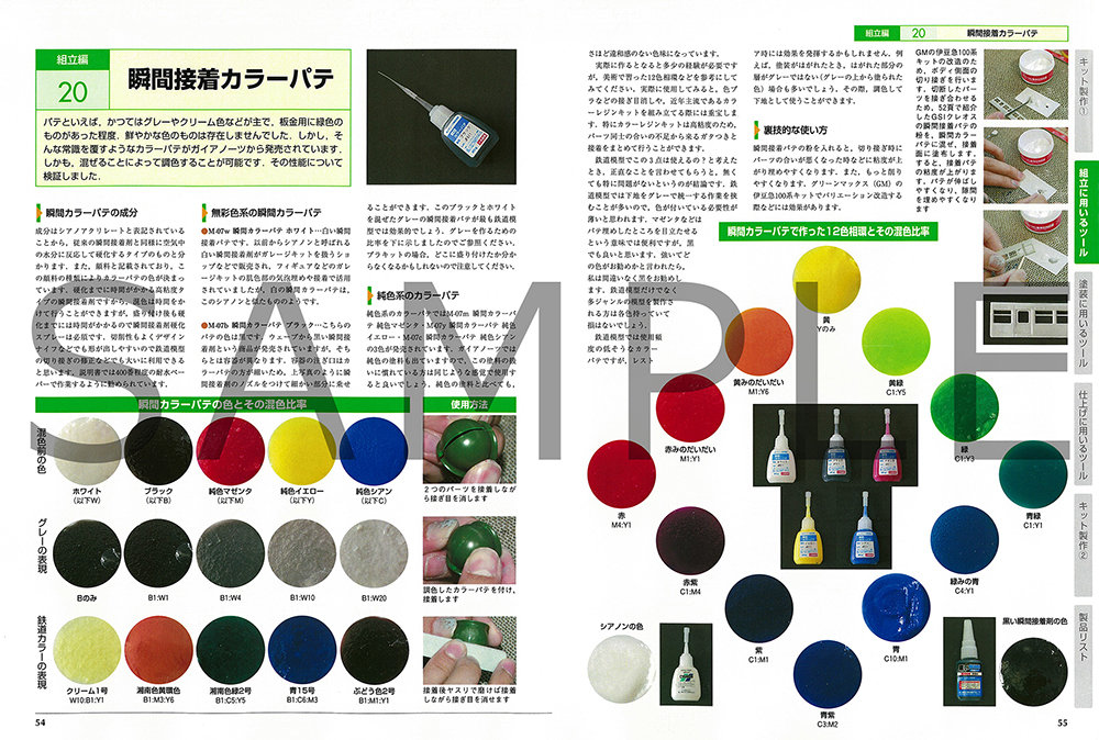 本書では鉄道模型を始めとするプラ,ペーパー,真鍮,工作で用いるツールやマテリアルの適切な使用方法を,類似製品の比較検証,時間短縮の裏技,イレギュラーな使用時の結果など,様々な要素を散りばめながら紹介します.