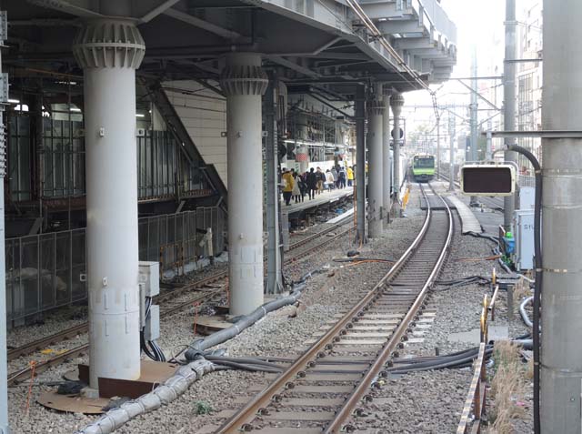 しばらく見ないうちに,旧臨時ホーム上にはこんな構造物が.この上が,新しいコンコースや駅本屋になるのだろうか.ホーム中程から渋谷方を見たところである.