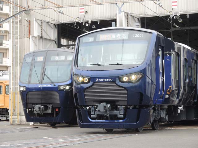 きょう,3月28日に相模鉄道では12000系電車の報道公開をかしわ台車両センターで実施し,併せてJR東日本線への相互直通運転開始日を発表した.