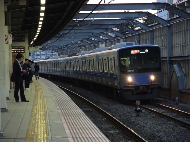 地下鉄10000系を待っているうちにやってきたのが西武20000系10連第3編成.フルカラーLEDの列車種別・行先表示装置つき編成である.8連第8編成は,今日時点でもまだ,いわゆる3色LEDのままだった.