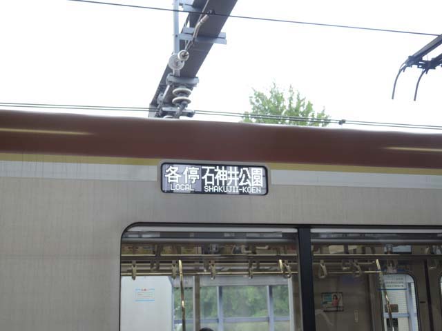 出勤途中の富士見台駅で反対方向の電車をなにげなく見ていたら,列車種別・行先表示装置が“変”であることに気づいてしまった.出発していく電車をとっさに撮影したのが,この写真.ピンぼけはお赦しを.