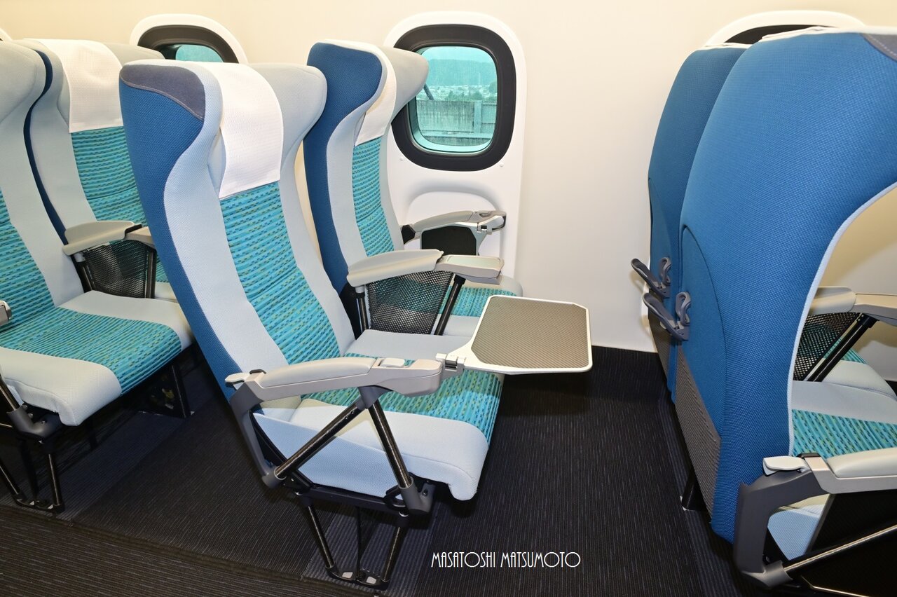 走行中、少々揺れは感じたけれど、天井などの消音効果?はあったと思います。外はあいにくの雨模様でしたが、外観も車内もじっくり観察出来た有意義な報道公開でした。