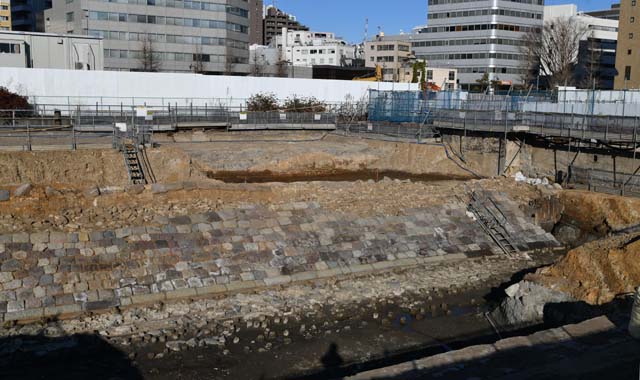 実は,1月10日から12日に掛けて実施された一般向けの見学会にも申し込んでいたのだが,残念ながら外れてしまった.報道公開に参加できたからよかった……と思っていたら,一般公開では,同時に発掘された汽車土瓶などが展示され,石垣の石,引き抜いた杭などを間近で観察することができたそうである.そういう意味では,残念!ではあった.次の機会を待つことにしよう.
