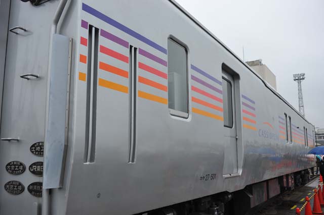 この日,“カシオペア”編成は,札幌で上野へ向け発車するための整備中.でも,非常用の電源車であるカヤ27 501は,ちゃんと展示されていた.