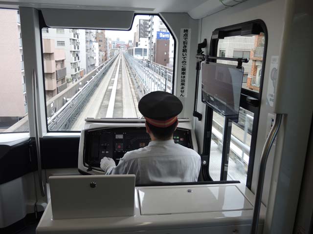 無人の自動運転が“ウリ”の新交通システムだが,この日の試乗列車では,運転そのものは自動だったものの,運転席に人が乗務されているという,なかなか貴重