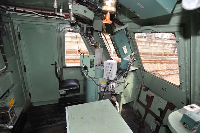 運転室に入るのも復元直後以来だから29年振り.ATS-Pが追設された以外はほぼ当時のまま.中央の窓が下降式で開閉可能であることが判るだろう.天井には空襲時に受けた弾痕がそのまま“保存”されている.