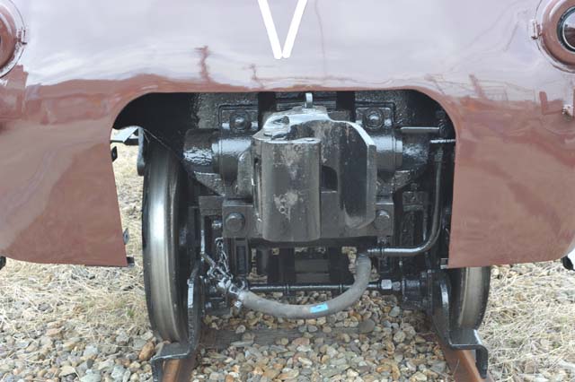 1エンド側の連結器.そのカバーは,新製以来,なんど外され,また塞がれたことだろう.今は開かれたままで,連結器も持ち上げられた状態で固定されているが,連結器の根元には回転軸があり,今でもストッパーを外せば下向けに収納できるようにはなっている.