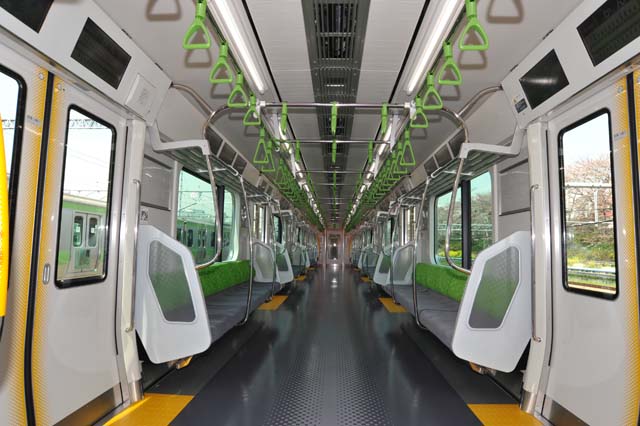 それから,東急電鉄のサハ5576に採用されたロールバーが全面的に採り入れられている.袖仕切りの一部が半透明になったのも目新しい.