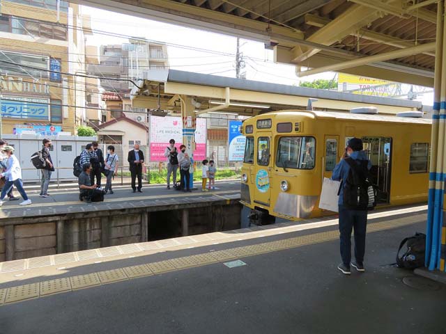 半袖でも汗ばむほどの陽気となった休日の,田無駅でののどかな撮影風景.石神井公園駅が高架複々線化で失われた今,両側にホームのある中線での折り返し風景は,貴重な存在となった.写真:池添智和