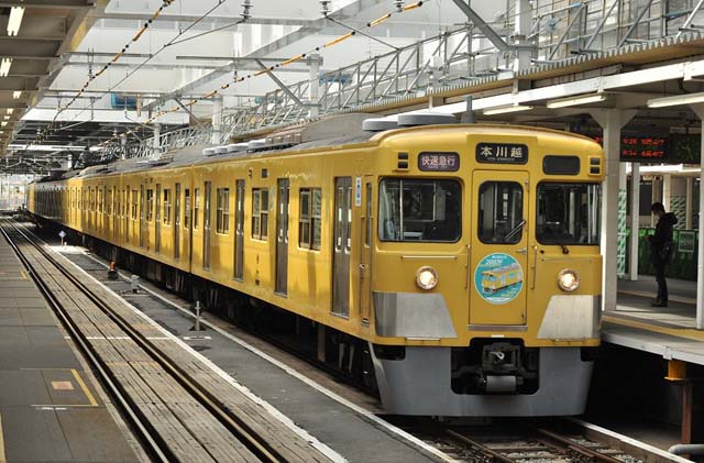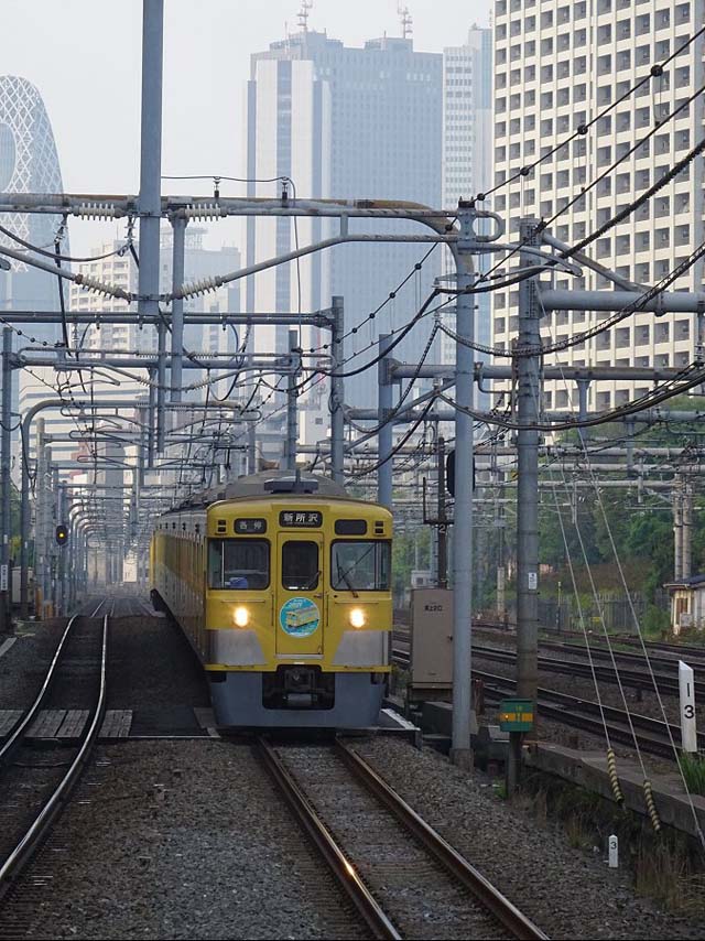 まずは高田馬場での,新宿の超高層ビル群を背景に向かってくる新所沢行き.写真:池添智和
