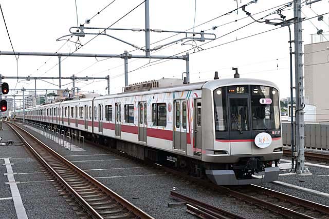 ラッピングの基本は,報道公開で紹介した目黒線3020系と変わりはなさそうである.でも,反対ホームだから,客室がどうなっているのかの観察は,おあずけ…….