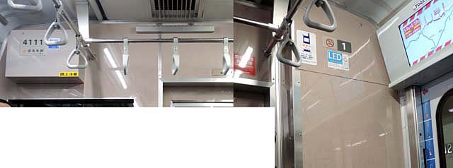 “今日はついてる!”と思いつつ乗った電車は東急5050系4000番代第8編成(長いっ).そういえば先日乗った4000番代の別編成では,5050系60番代後半の一部編成と同じく運転室仕切り窓の車掌側を埋め込み改造していた.その改造については4月21日付けのここ“東急電鉄初代5000系の里帰りと現5050系の話題”で紹介している.この編成はどうだろうと編成端に移動してみたら,この第8編成はオリジナルを保っていた.