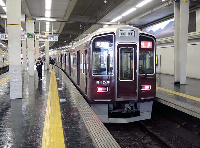 この日の朝,梅田の駅で僕を出迎えてくれたのは9000系の9002編成.新しいと思っていた9000系も登場から15年を経過し,今やベテランの域に達しようとしている.