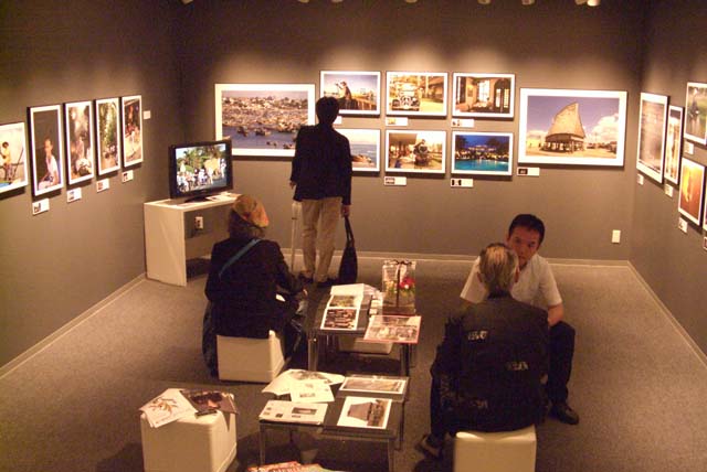 会場に入る前から感じられたオーラの源(!?).普通の通路に面したウィンドウに展示されたベトナム風景の数々.