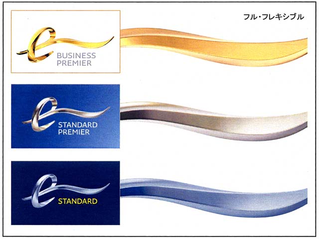 新しいユーロスターのロゴマークと,クラスの名称.最上級がビジネスプレミア,真ん中がスタンダードプレミア,そしてスタンダードの3タイプ.