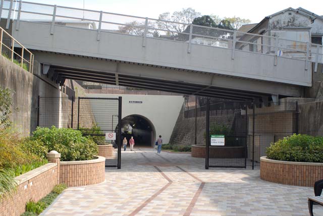 トンネルから横浜駅方面を望む.単なる遊歩道ではなく,この界隈に住む人たちにとっては,横浜駅との間を往来するための,便利な抜け道でもあるかもしれない.