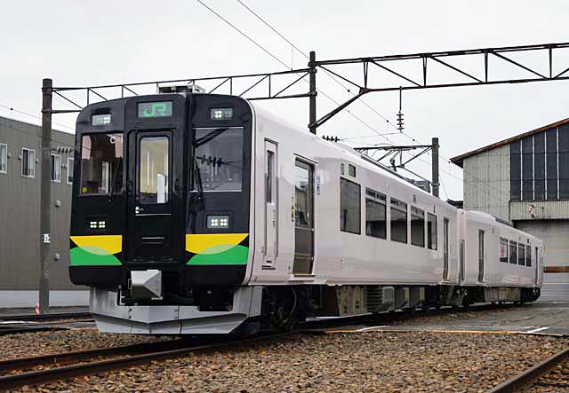 そしてこちらが今日の主役である737系電車.側窓の幅が特異.2mに及ぶだろうか.2扉なので731系や733系よりも際立っている.車体は無塗装ではない.