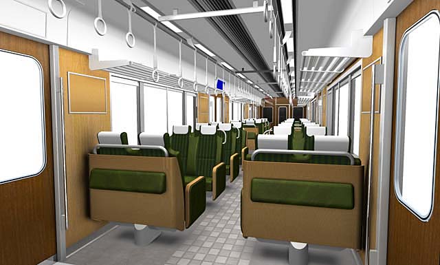 2300系の定員は先頭車112名 中間車124名(座席指定サービス提供車両のみ40名)だという.のことから,発表されたイメージ図は座席指定サービス車ではないことが解る.