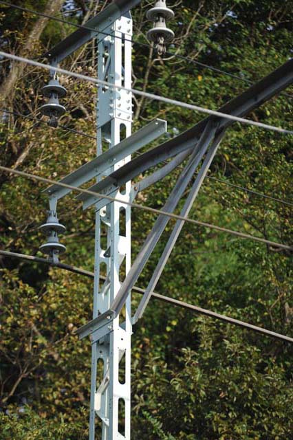 しかし,進みつつある複線化によって,この架線柱の数は,どんどん減っている.観察するならお早めに.