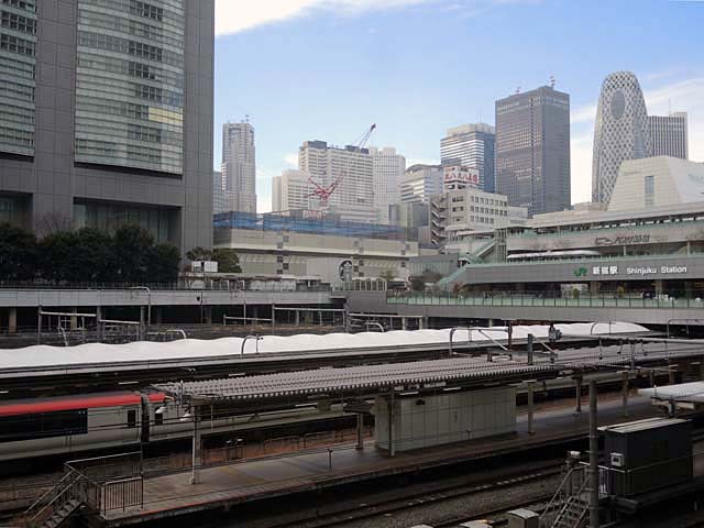 として“今日”,2024年1月18日の,JR新宿ビルの様子.撮影ポイントは線路を挟んだ対岸の高島屋前.