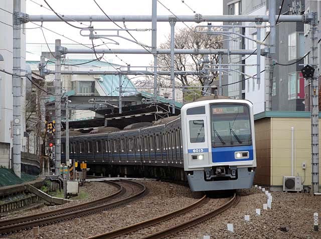 そんなこんな,仕事の段取りを考えながら電車を待っていたら,この数日,ちょっと面持ちの変わった6000系を目にするようになった.考え事をしながら目の前を通過して行くのを眺めているだけだから,どこが?というのがよく判らなかった.そこで,今日の午後,駅前の銀行へ行く用事の前後に少し時間をとって,いつもの場所で6000系を待ち構えてみた.その結果はといえば…….
