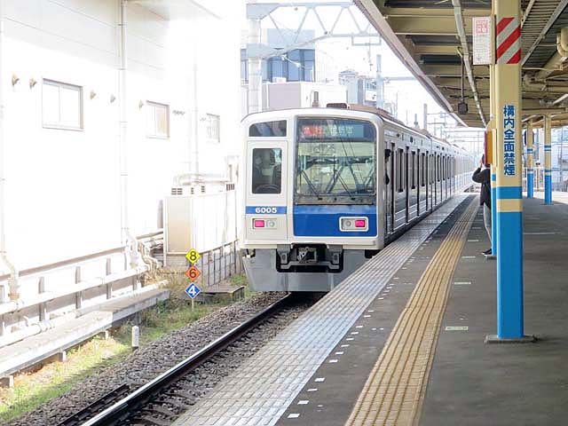 西武新宿行き急行として田無駅を発車する6105編成.写真:池添智和
