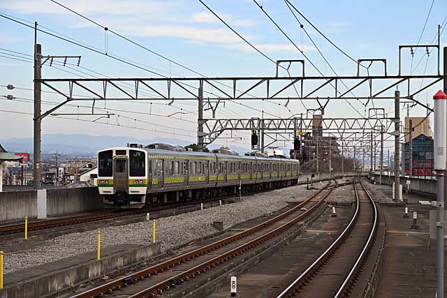 構造を確かめることができて満悦のうちに高崎へ.ここでもしばらく211系を眺め……いやいや,発車してゆく電車,到着する電車,東京方面からの電車を除けば,全部211系.