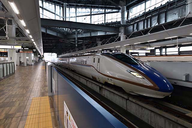 そしてようやくたどり着いた新幹線ホーム.差し当たって13-14番線に上がってみたら,折りしも12番線に列車が到着した.