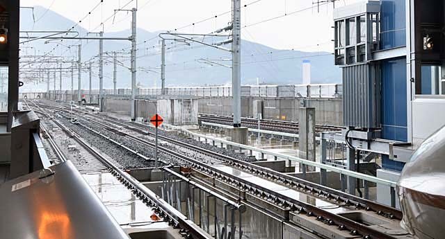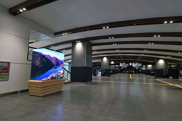 そしてさきほどのコンコースを逆方向に進んで新幹線ホームへ.エレベーターやエスカレーターは数えきれないほど設置されているし,通路は広いし,案内看板も随所に立てられているから,“迷う”という心配はなさそう.問題になるとすれば,混雑時の“渋滞”だろうか”.