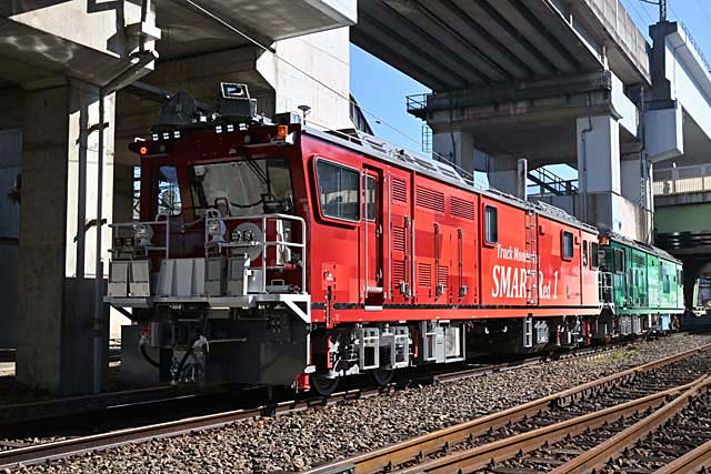 一方の“SMART-Red”はMS0256-1という形式で,2024年2月製.製造番号は102985.自重は47t.線路設備モニタリング車とある.