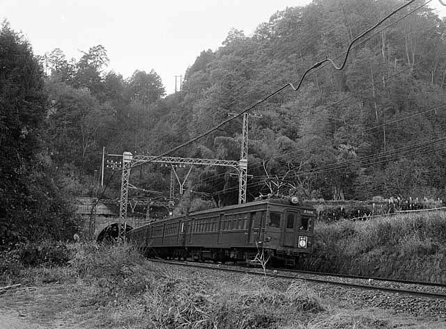 54年前の,ほぼ同じポイント.今はここまで近寄ることができない.樹は大きく育ったものの山の稜線から,同地点だということは理解してもらえるだろう.レイルNo.101の表紙写真は,このカットを大トリミングしたものである.昭和47/1972年11月26日