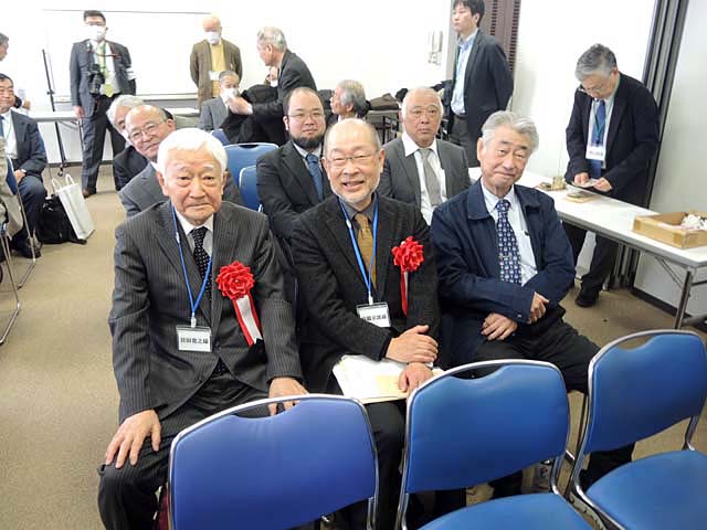 贈呈式は成田国際文化会館会議室で午前10時からスタートした.開始直前の宮田寛之さんと高橋卓郎さん,その右に陪席するは角田幸弘さん,2列目はドコービル修復の功労者代表として浜松から駆け付けた山口俊生さん,石田遼太郎さん.平田千秋さん.