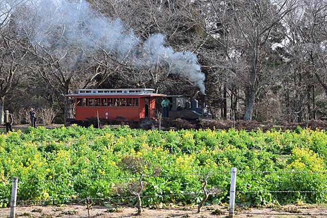 今回の受賞者の一人,宮田寛之さんの前を元気よく通過する“活白ドコー”またの名は“糸魚川のドコービル”1号機.画面右端でその組み合わせを撮影するのは羅須地人鉄道協会代表の角田幸弘さん.贈呈式終了後に成田ゆめ牧場で催された,ドコービル見学会のひとこま