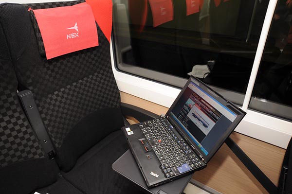 全席の肘掛けにコンセントがあり,列車走行中でも,車内でWiMAXという新しい公衆無線LANサービスを使ったインターネット接続を利用出来るのが大きな特徴.