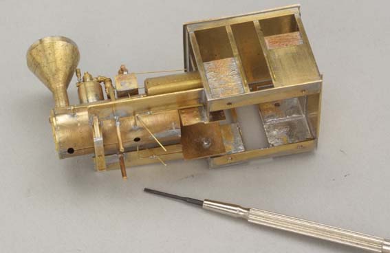 前に組み立てた18tクライマックスに極細のマイナスドライバーが付属していたのを思い出し,ボイラー下から差し込んで締め直します.